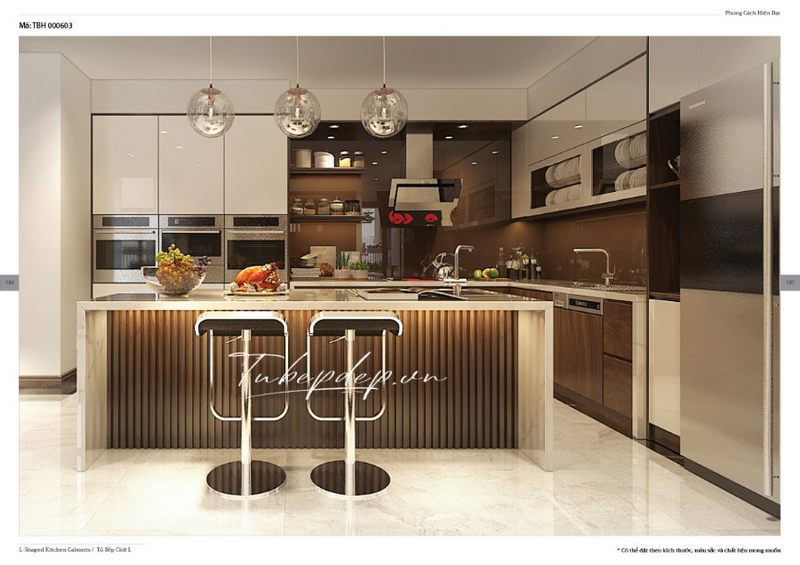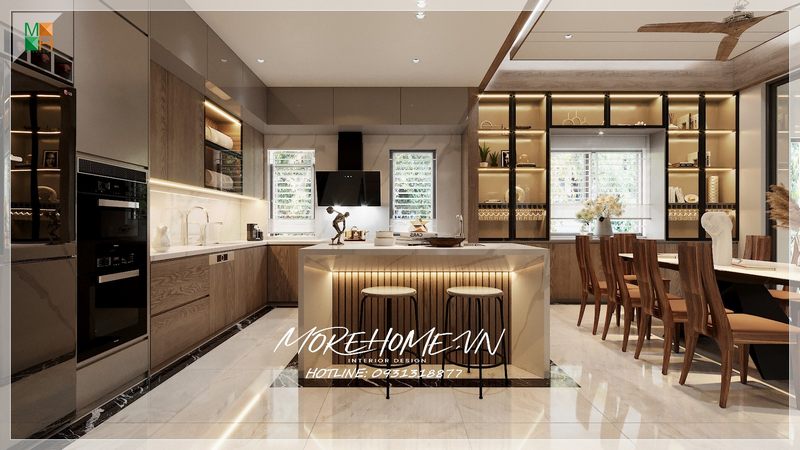 Thiết kế nội thất phòng bếp hiện đại, sang trọng và tiện nghi cho không gian nhà phố, biệt thự