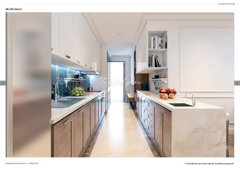 Thiết kế nội thất phòng bếp gỗ công nghiệp hiện đại, đơn giản cho nhà phố, chung cư, biệt thự