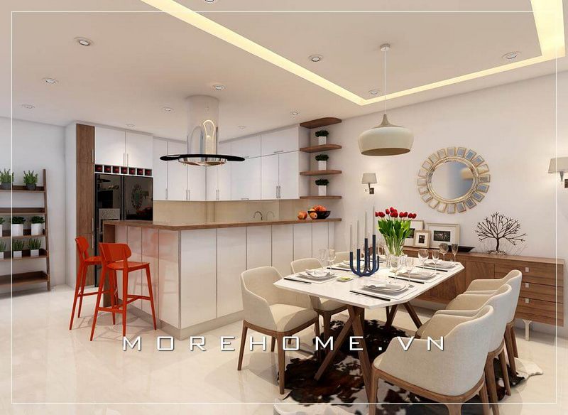 Phòng ăn không gian hạnh phúc cùng các thành viên trong gia đình thưởng thức những hương vị thơm ngon của món ăn, trò chuyện chia sẻ về cuộc sống gắn bó tình cảm yêu thương gia đình