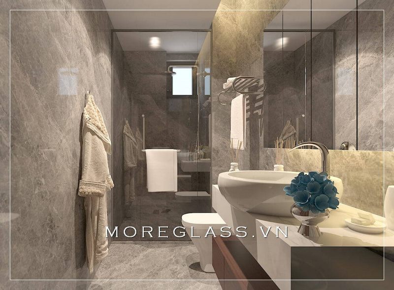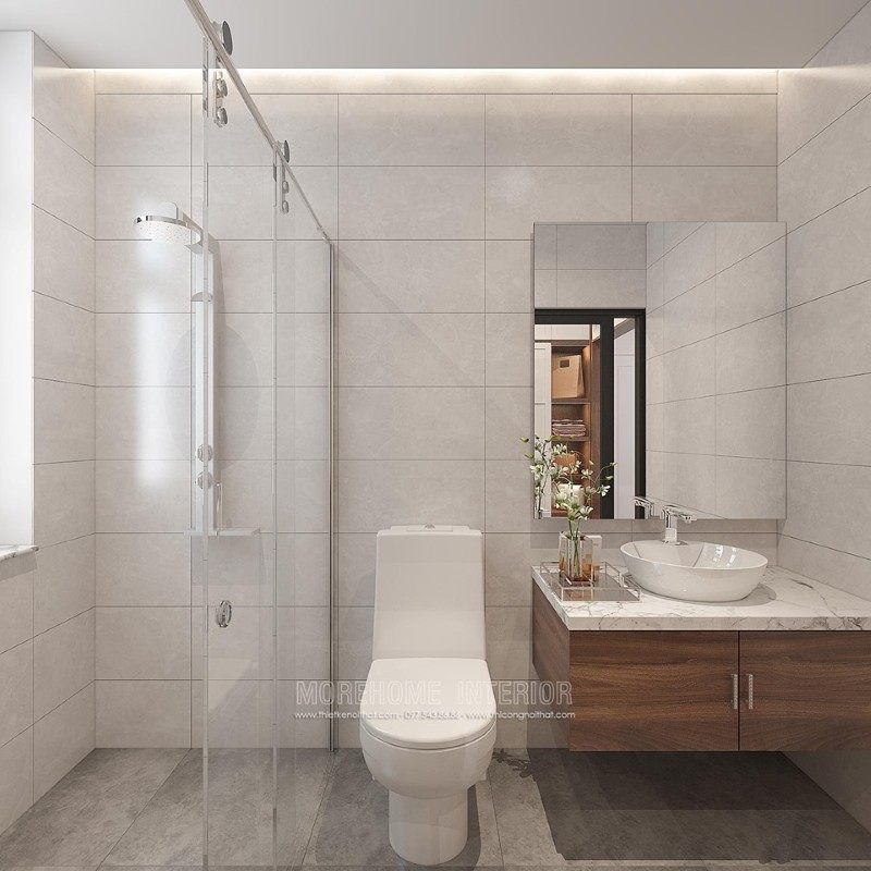 Thiết kế phòng vệ sinh hiện đại không quá cầu kì nhưng đáp ứng đầy đủ tính năng sử dụng tiện nghi.