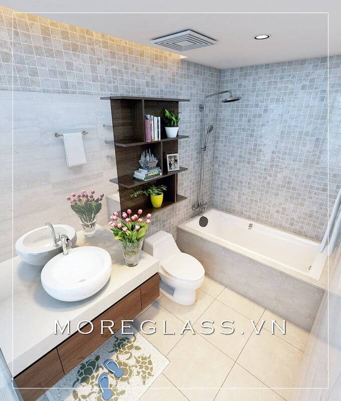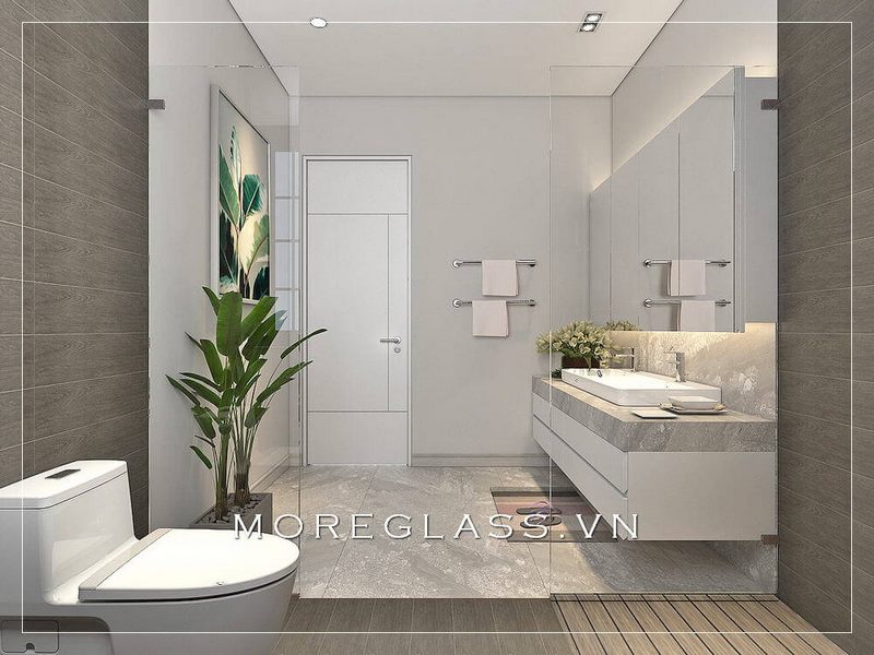 Mẫu nhà tắm biệt thự, nhà phố kết hợp WC thiết kế thông minh, bồn tắm cao cấp thiết kế sử dụng kính cường lực làm vách ngăn tinh tế và sang trọng.