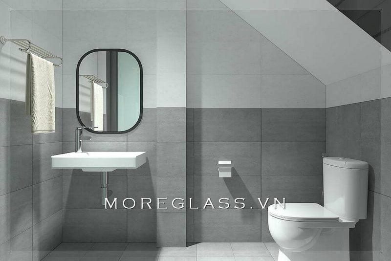 Mẫu thiết kế phòng vệ sinh nhỏ gọn hiện đại với gương trang trí độc đáo