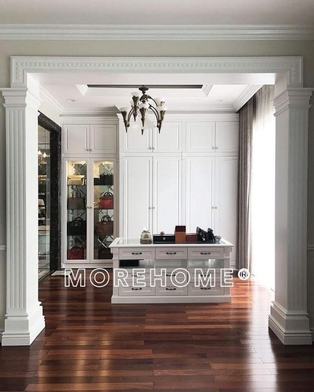 Thi công phòng thay đồ phòng thay quần áo phong cách tân cổ điển phun sơn màu trắng sang trọng tại biệt thự Ciputra Hà Nội