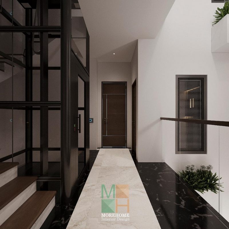 Thiết kế hành lang nhà phố, biệt thự nơi di chuyển kết nối giữa các không gian trong nhà với nhau mang tính thẩm mỹ cao.