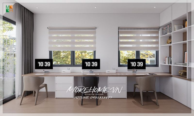 Mẫu thiết kế nội thất chung cư, nhà phố, biệt thự theo phong cách hiện đại cửa ban công thông thoáng có ánh sáng tự nhiên chiếu vào là điều kiện lý tưởng cho không gian phòng học .