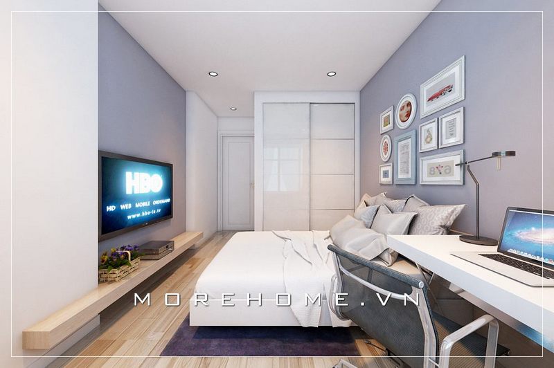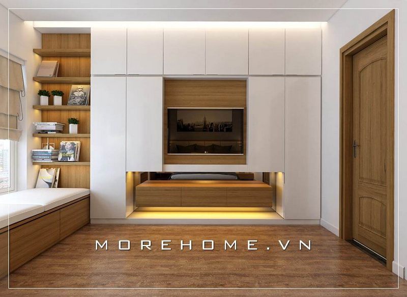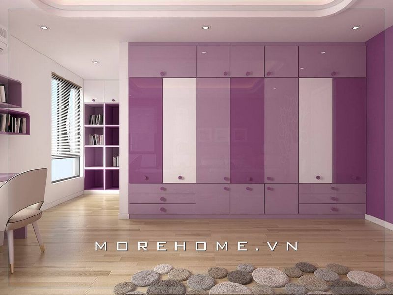 Tủ quần áo màu trắng hiện đại sẽ khiến phòng ngủ trở nên rộng rãi hơn với vẻ trẻ trung của nó.